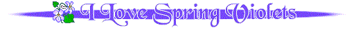 Background: Spring Violets - 6 KB Copy background to your hard drive by pointing mouse arrow at an area with no other graphics or writing. Right click and "Save Background as..." . Individually copy the buttons and Bars to your hard drive by right clicking and "Save image as...". Choose a name which will make image easier for you to find, when you are ready to use it. If you let me know when you use one of my backgrounds, I will give you a promotional line on the Graphic Friends Page. |